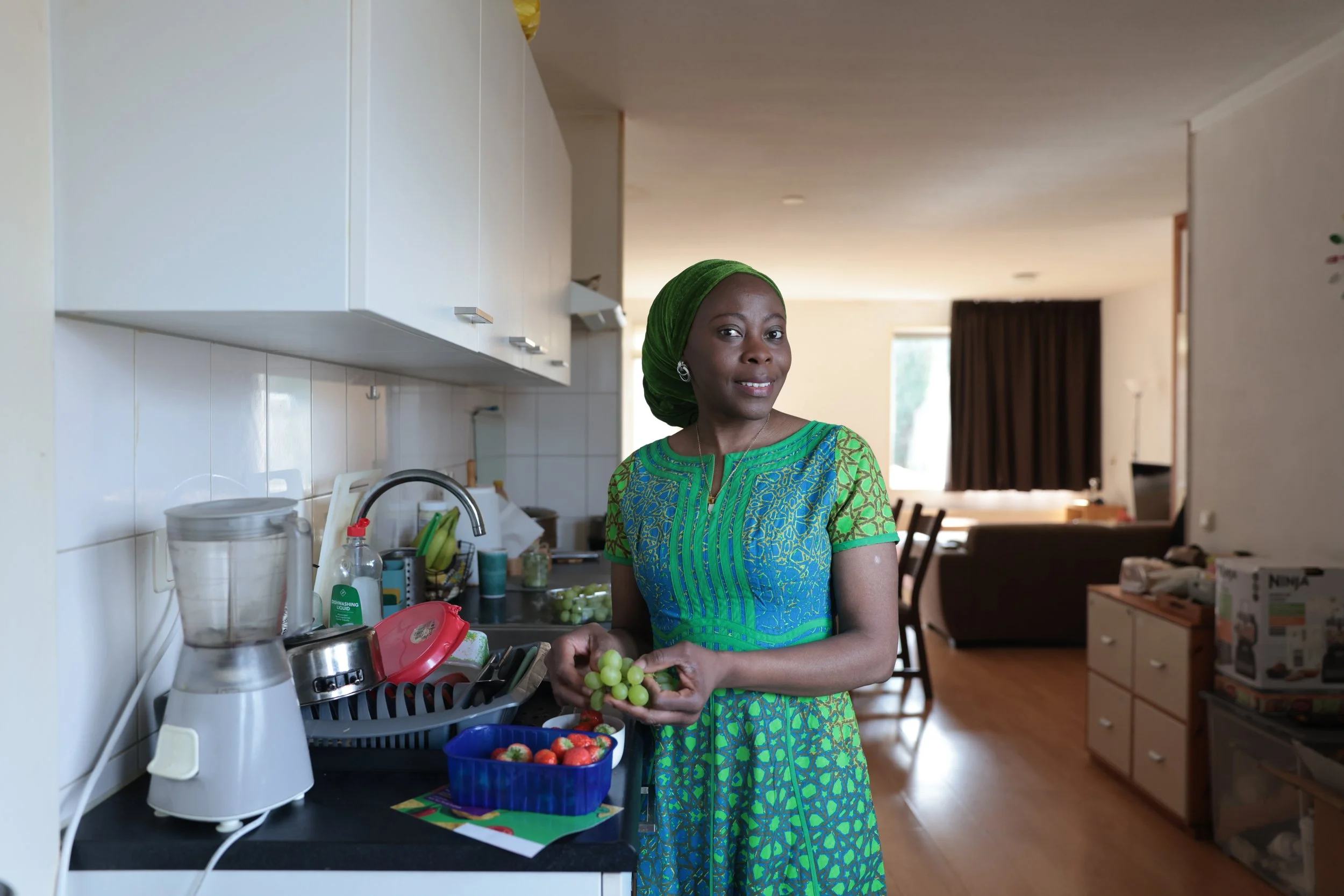 Cooking makes me happy. I spend hours in the kitchen. And in fact my favourite word in my language is ounje, which means food. That’s the word I have in my head all the time. If I go for a walk and see a plant, I immediately start thinking about what I could combine it with. I am always thinking about recipes. One day I actually spent nine hours in the kitchen, I couldn’t believe it. I did a few other things in between, but when I checked the time, I saw that it had been nine hours, from the morning until the evening. Normally, I just prepare food for the week, but that day I decided to make soup, and then cake, and then some snacks. My little one asked if we were going to have a party. Maybe one day I’ll organise cooking lessons. There is an event in Enschede where people cook food of different nationalities, and I hope that someday I might have time to contribute.